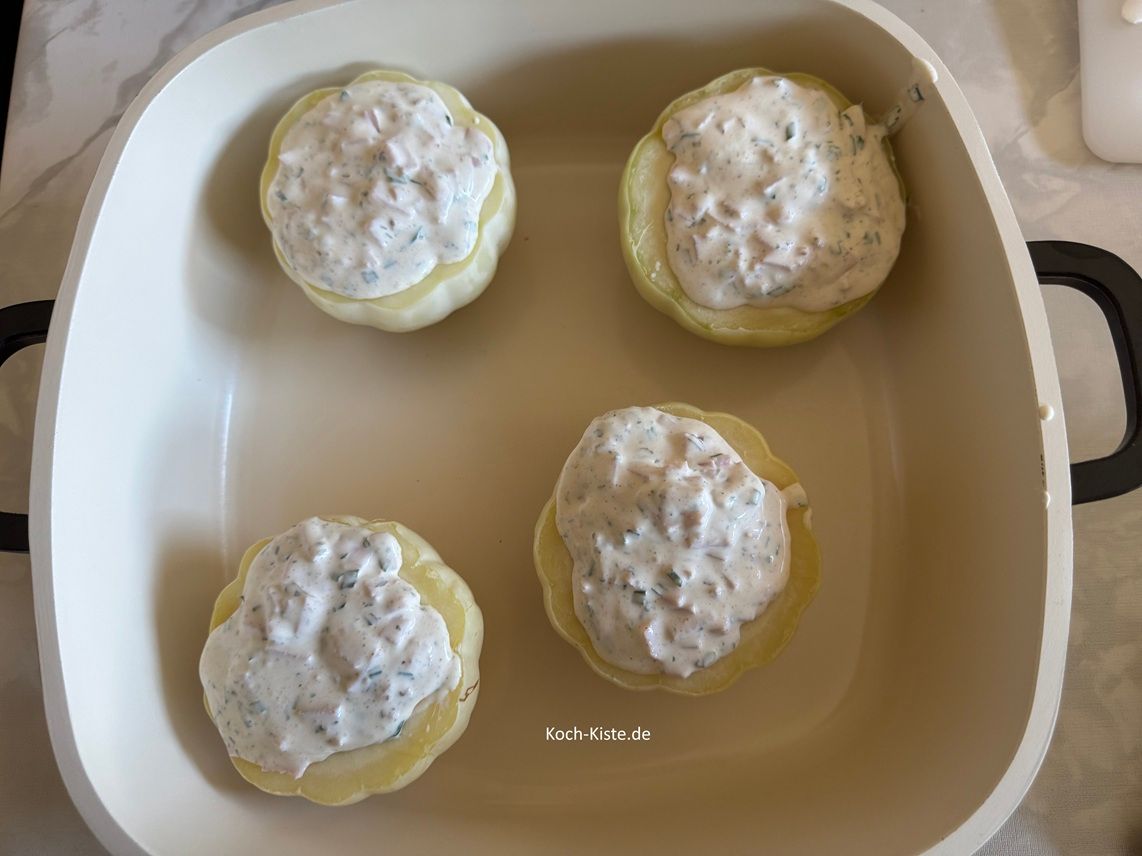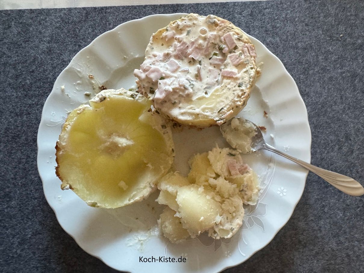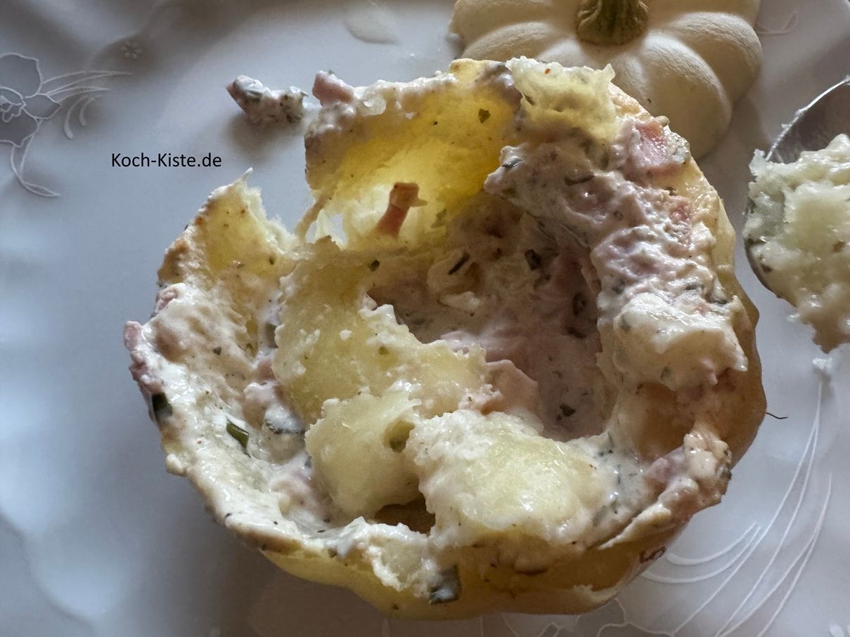 Mit einer Füllung aus Schmand ( oder Kräuterfrischkäse) mit gekochtem Schinken - ein Genuß !