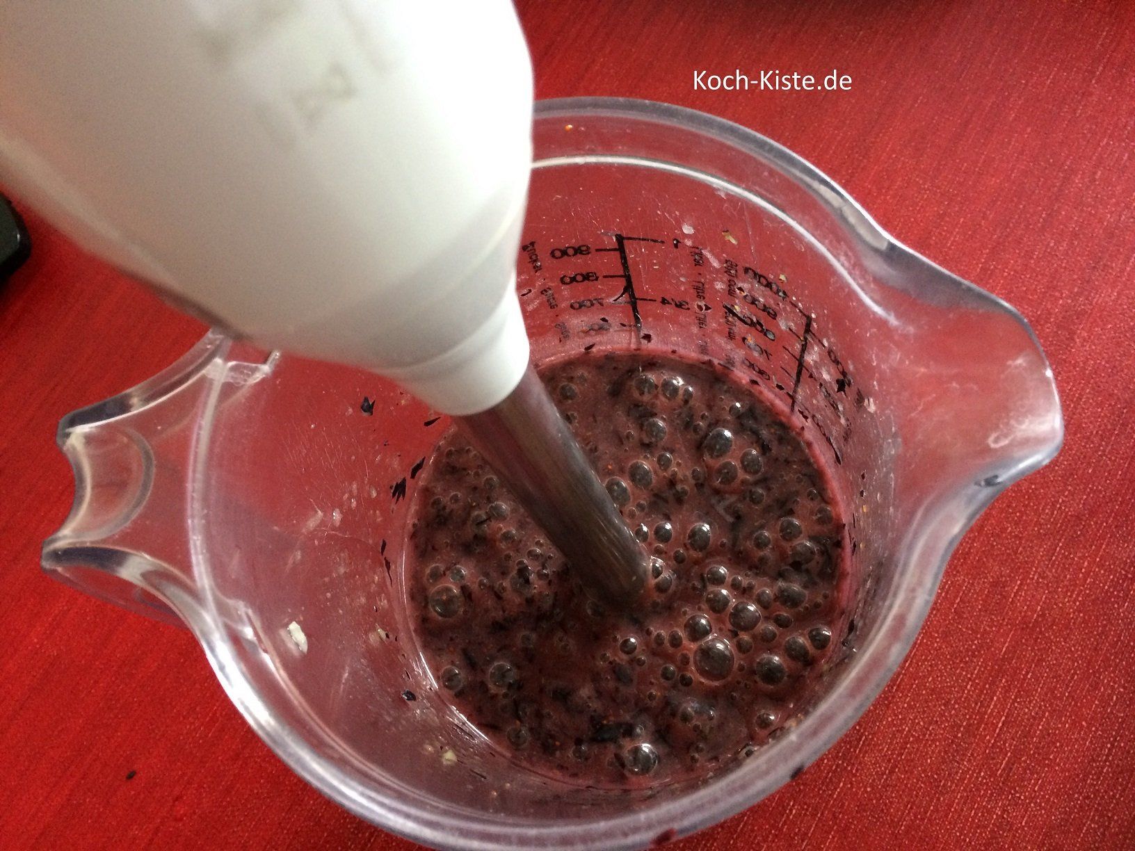 Wichtig: ich empfehle den Messbecher nur halb zu füllen, da das pürieren der Blaubeeren eine sehr