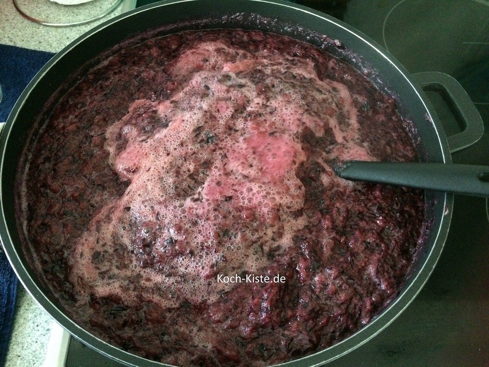 Soll der Blaubeer-Sirup dickflüssig sein, so dass Ihr ihn über Pudding usw. gießen könnt, brauch5t der Blaubeer-Sirup nach dem Kochen NICHT mehr durch ein Sieb gegossen werden.