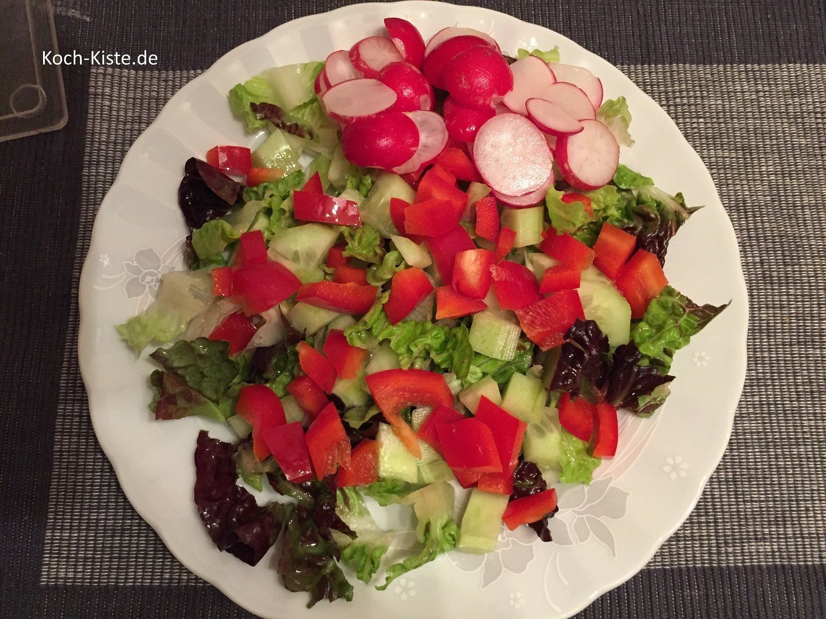 Ich habe hier ein ganz einfaches Essig-Öl Dressing verwendet.