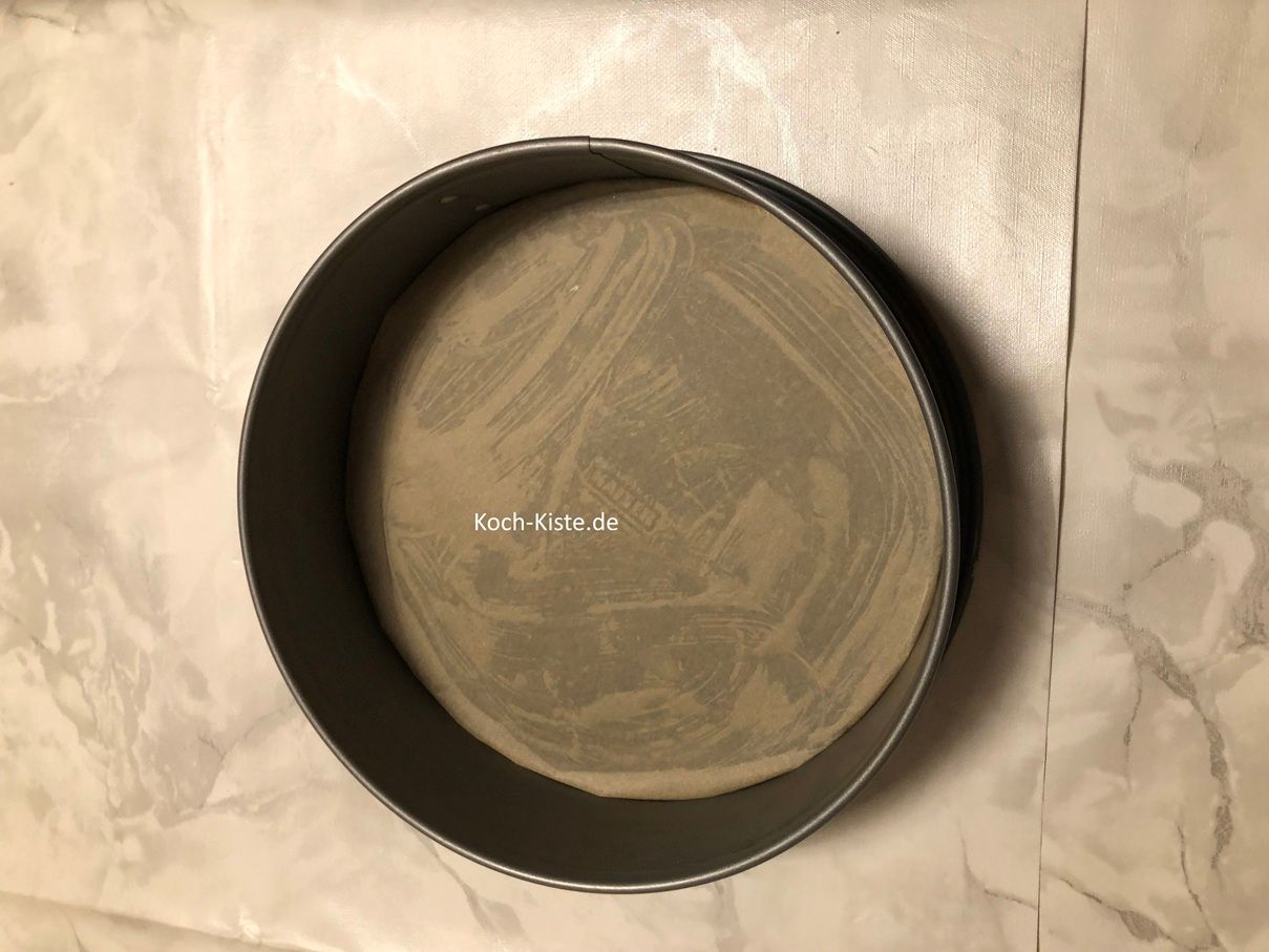 g) als nächstes wird das ausgeschnittene Backpapier auf dem Springformboden gelegt Bild 5