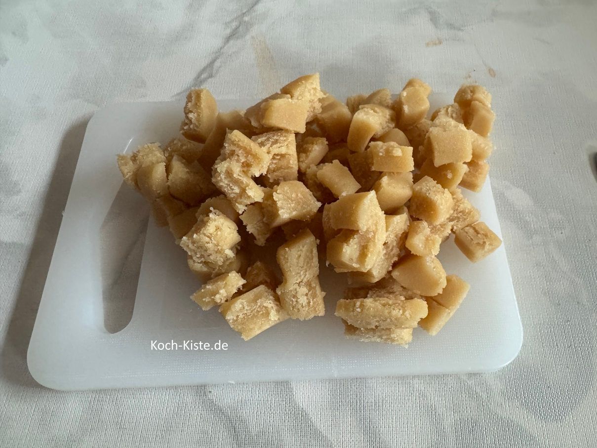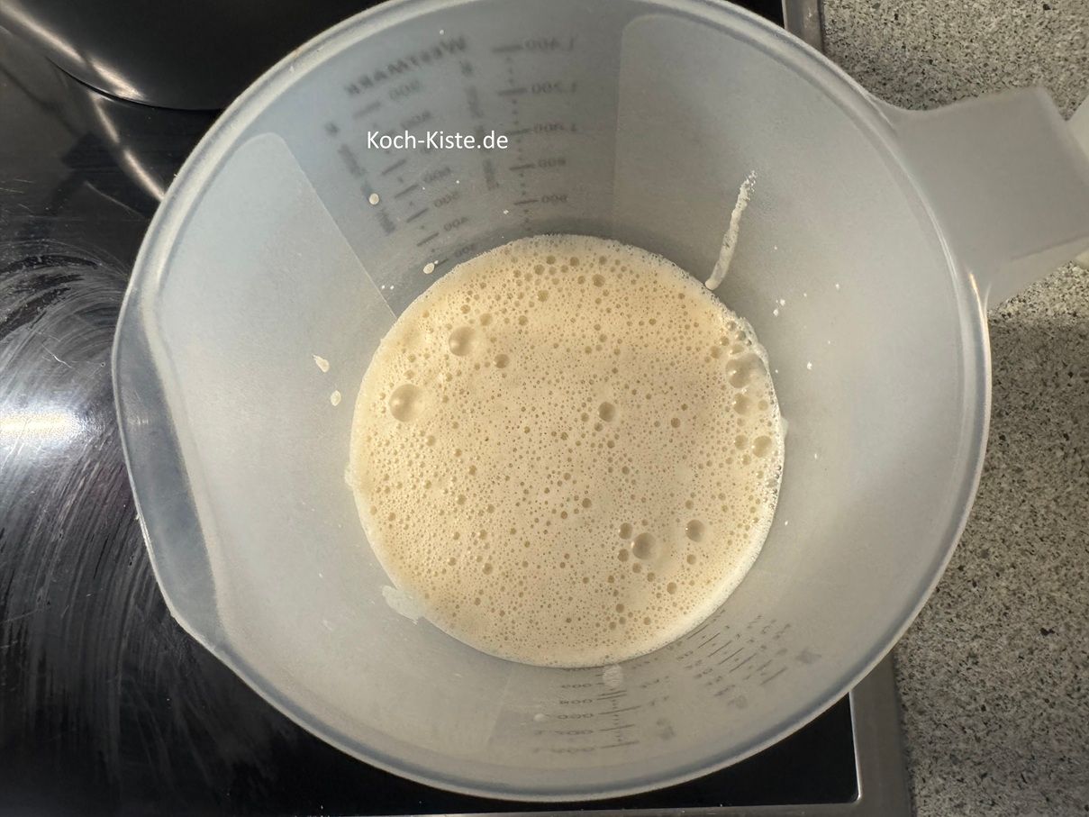 Da sich die Marzipanrohmasse in der erhitzen Milch nicht komplett auflösen lässt, ist es wichtig das Ihr den Marzipan-Likör nach dem Pürieren, noch einmal durch ein sehr feines Sieb laufen lasst.