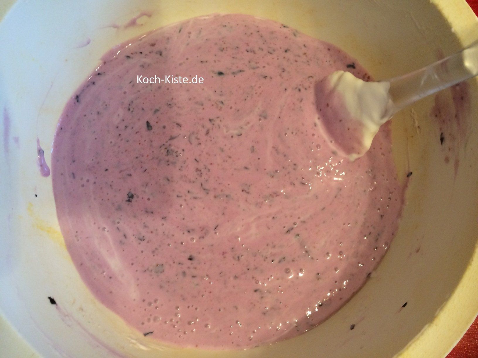 e) jetzt pürierst Du alles kurz miteinander, so dass die Heidelbeeren zerfallen.